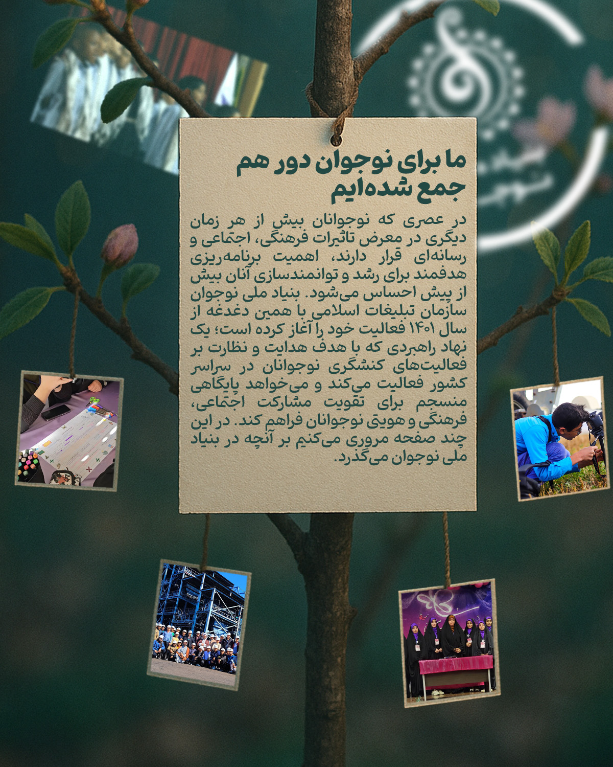 به گزارش روابط عمومی سازمان تبلیغات اسلامی، بنیاد ملی نوجوان سازمان تبلیغات اسلامی از سال 1401 با هدف هدایت و نظارت بر فعالیت‌های کنشگری نوجوانان شکل گرفت تا پایگاهی باشد برای تقویت مشارکت اجتماعی، فرهنگی و هوایتی نوجوانان و تشکل‌های نوجوانانه سراسر کشور. این بنیاد تلاش می‌کند تا جریان‌های نوجوانانه کشور را رصد و پشتیبانی کند؛ از مدارس صدرا و طرح «مدار» تا شبکه‌های تربیتی دخترانه و پسرانه و رویدادهایی مثل «سفارتخانه مقاومت». همزمان با هفته نوجوان، نگاهی کوتاه داریم به بخشی از فعالیت‌ها و برنامه‌های این بنیاد.