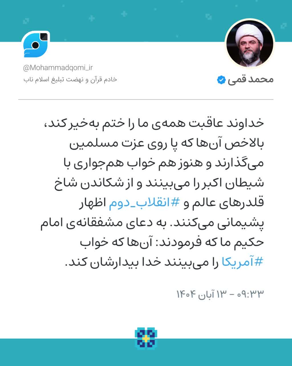 ۱۳ آبان | حجت‌الاسلام قمی در صفحه شخصی خود نوشت؛