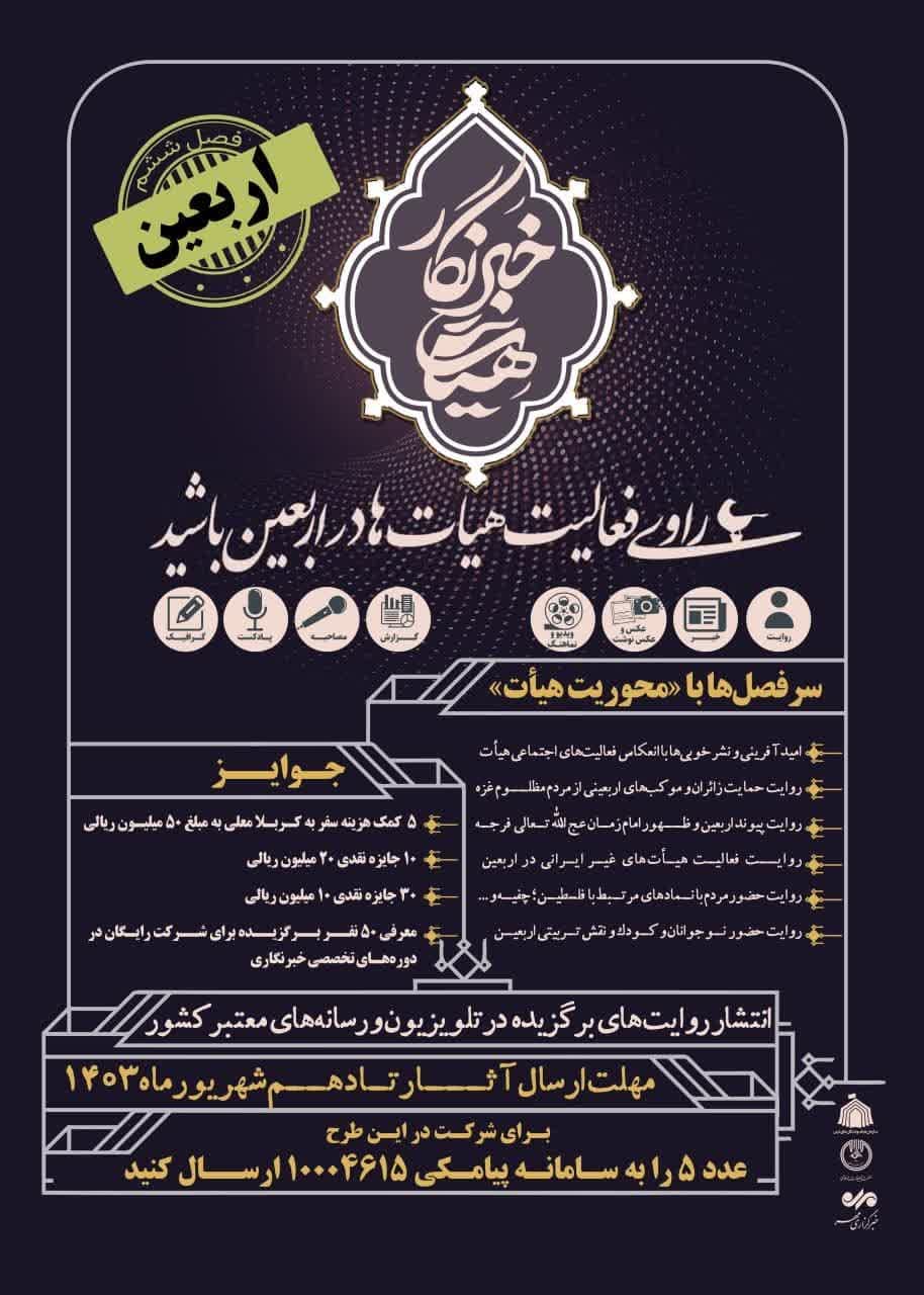 همزمان با فرارسیدن ایام ماه محرم و برپایی مجالس عزاداری، سازمان هیأت و تشکلهای دینی پنجمین فصل طرح «هیأت خبرنگار» را برگزار میکند.