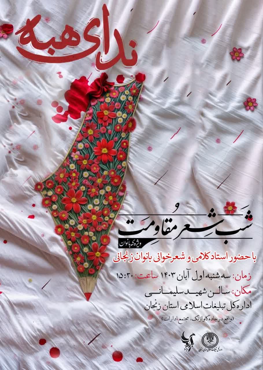 به همت امور بانوان اداره کل تبلیغات اسلامی استان زنجان در راستای ارتقای روحیه پایداری شب شعر مقاومت ویژه بانوان زنجانی برگزار میشود.