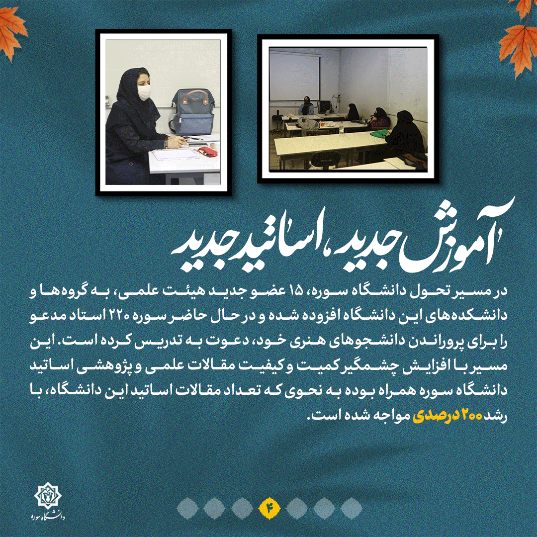 به گزارش روابط عمومی سازمان تبلیغات اسلامی، دانشگاه سوره یکی از معدود دانشگاههای ایران است که به طور خاص روی تربیت هنرمند و ارتقای سطح دانش جوانان مستعد در امر هنر تمرکز دارد؛ یکی از مراکز آموزش عالی که از ابتدا بنا بود مرکزی برای تربیت هنرمند متعهد و با دانش شود و طی گذشت سالها به سیاق و روال سایر مراکز آموزش عالی در هنر تبدیل شد؛ چیزی که تحول در این دانشگاه را امری اجتناب ناپذیر می کرد. مهمترین راهبرد دانشگاه سوره در سالهای اخیر اجرای سند تحول دانشگاه است. جزئیات این تحول چیست؟ این نشریه را دنبال کنید.