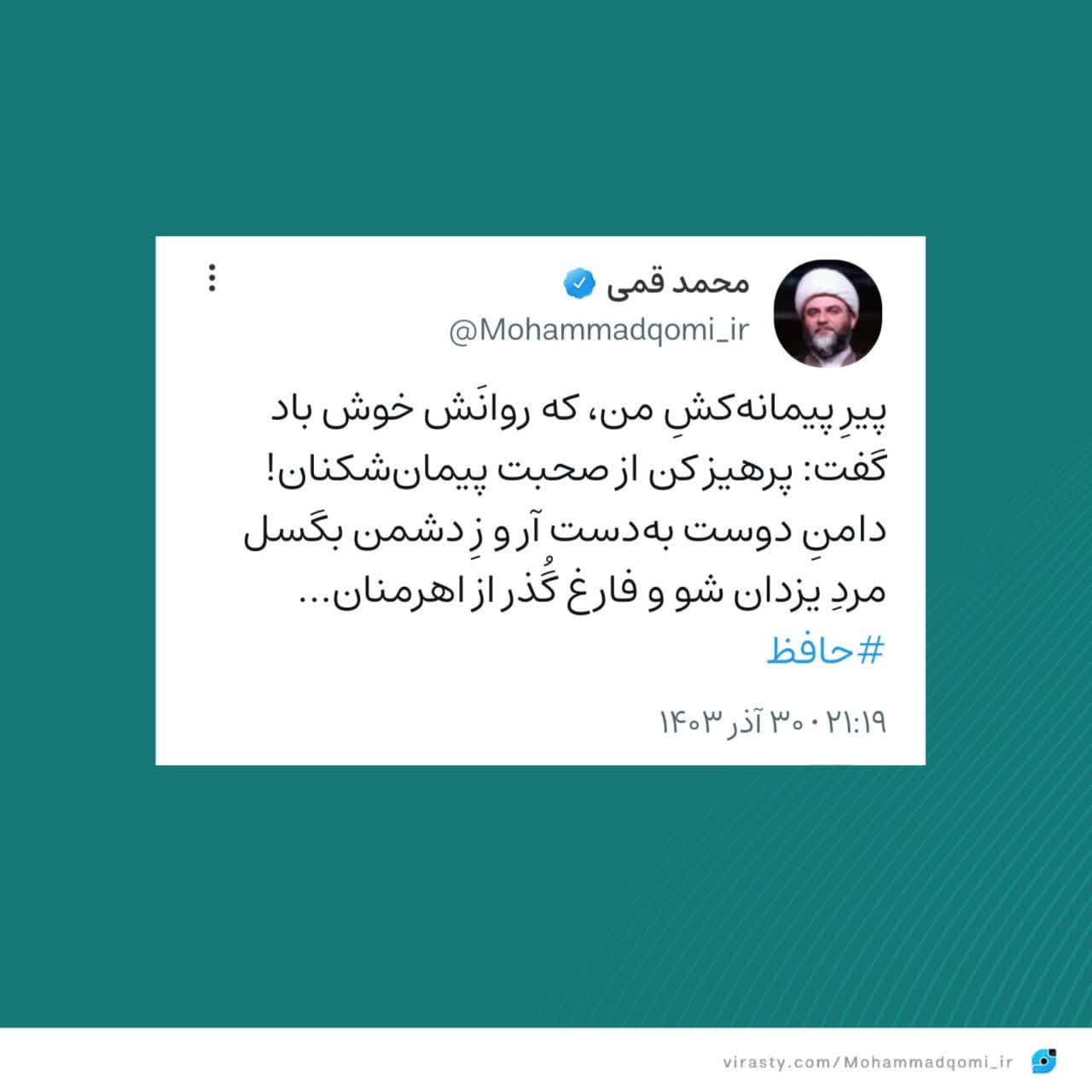 ۳۰ آذر | حجتالاسلام قمی در صفحه شخصی خود نوشت؛