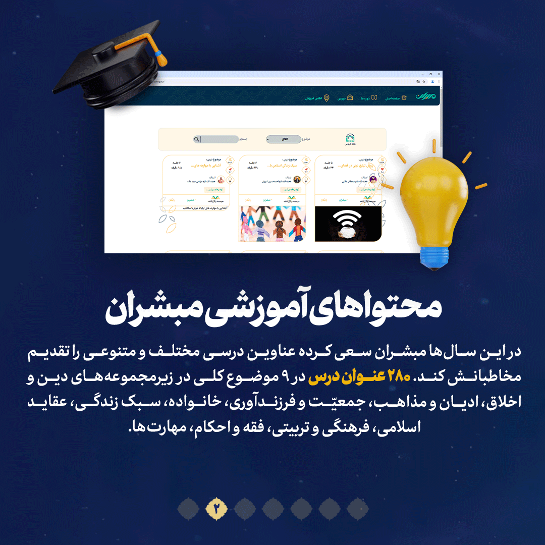 سامانه مبشران در سال ۱۳۹۸ آغاز به کار کرد تا محملی باشد برای دسترسی مردم به محتواهای آموزشی دینی. زیرساختی که میزبان مخاطبان متنوع از مبلغین و طلاب و مادحین تا دانشجویان و فرهنگیان است. در این شماره از نشریه دیجیتال مروری میکنیم بر این سامانه.