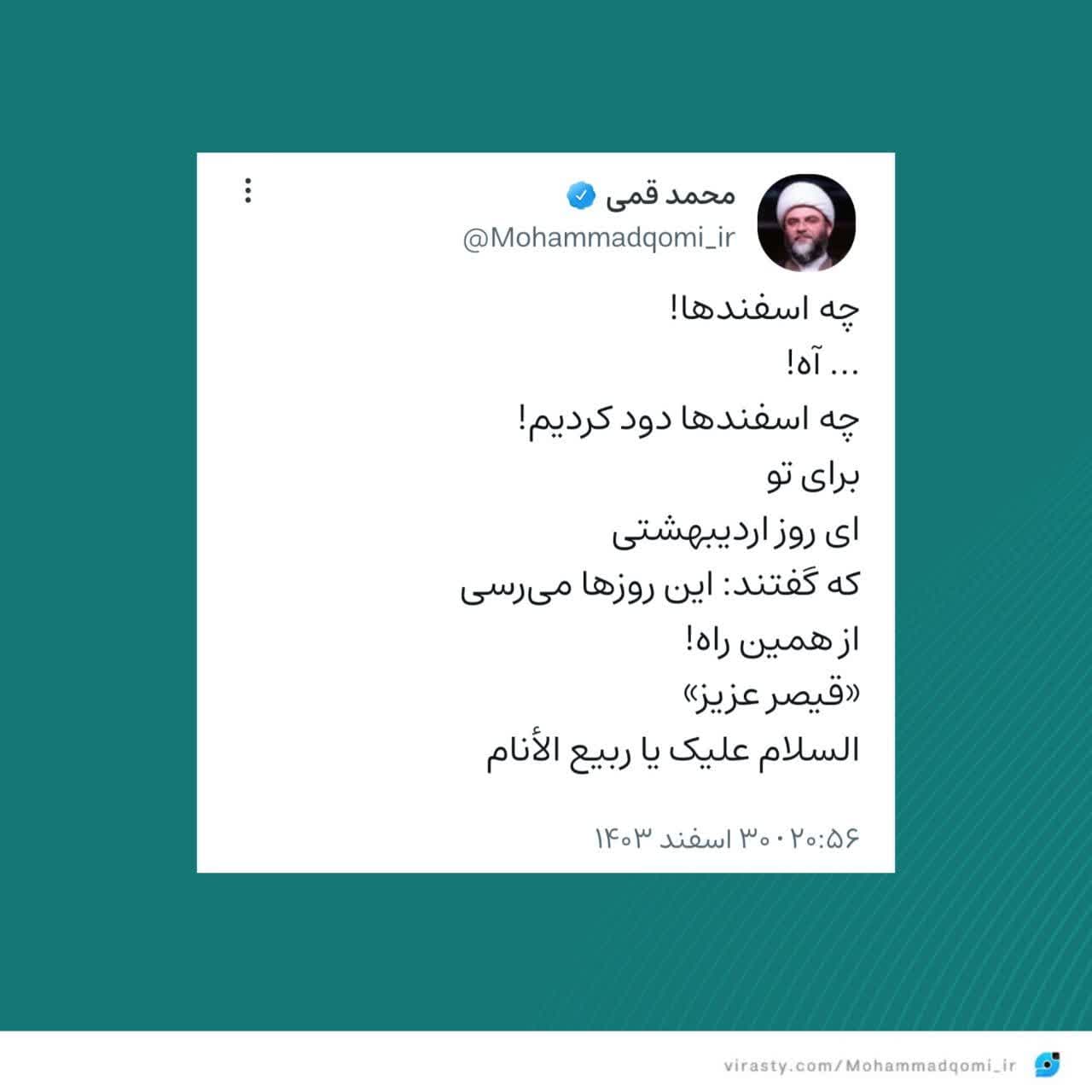 ۳۰ اسفند | حجتالاسلام قمی در صفحه شخصی خود نوشت؛