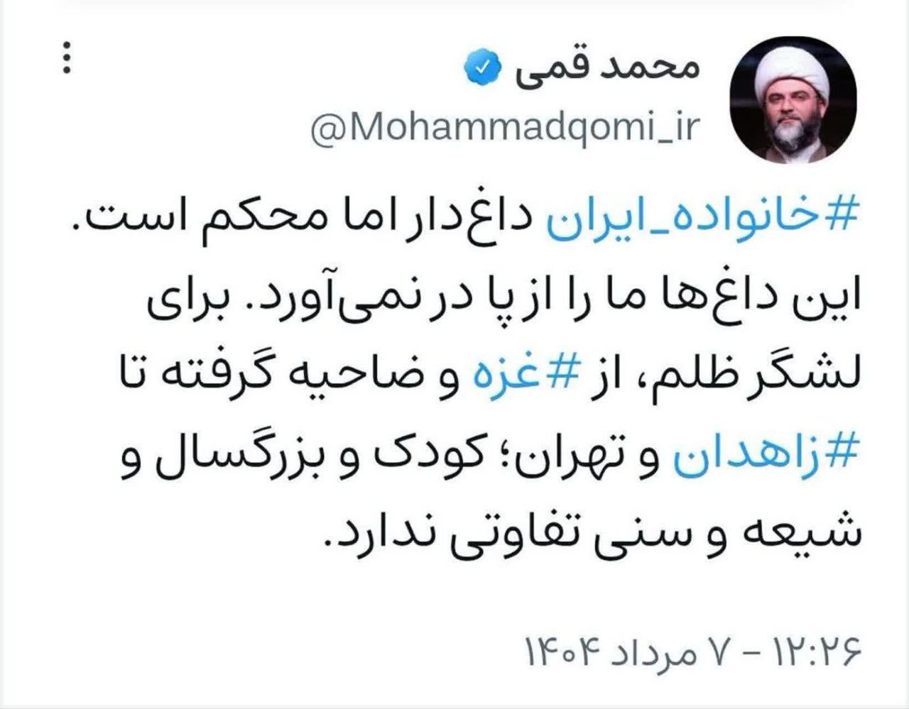 ۷ مرداد | حجتالاسلام قمی در صفحه شخصی خود نوشت؛